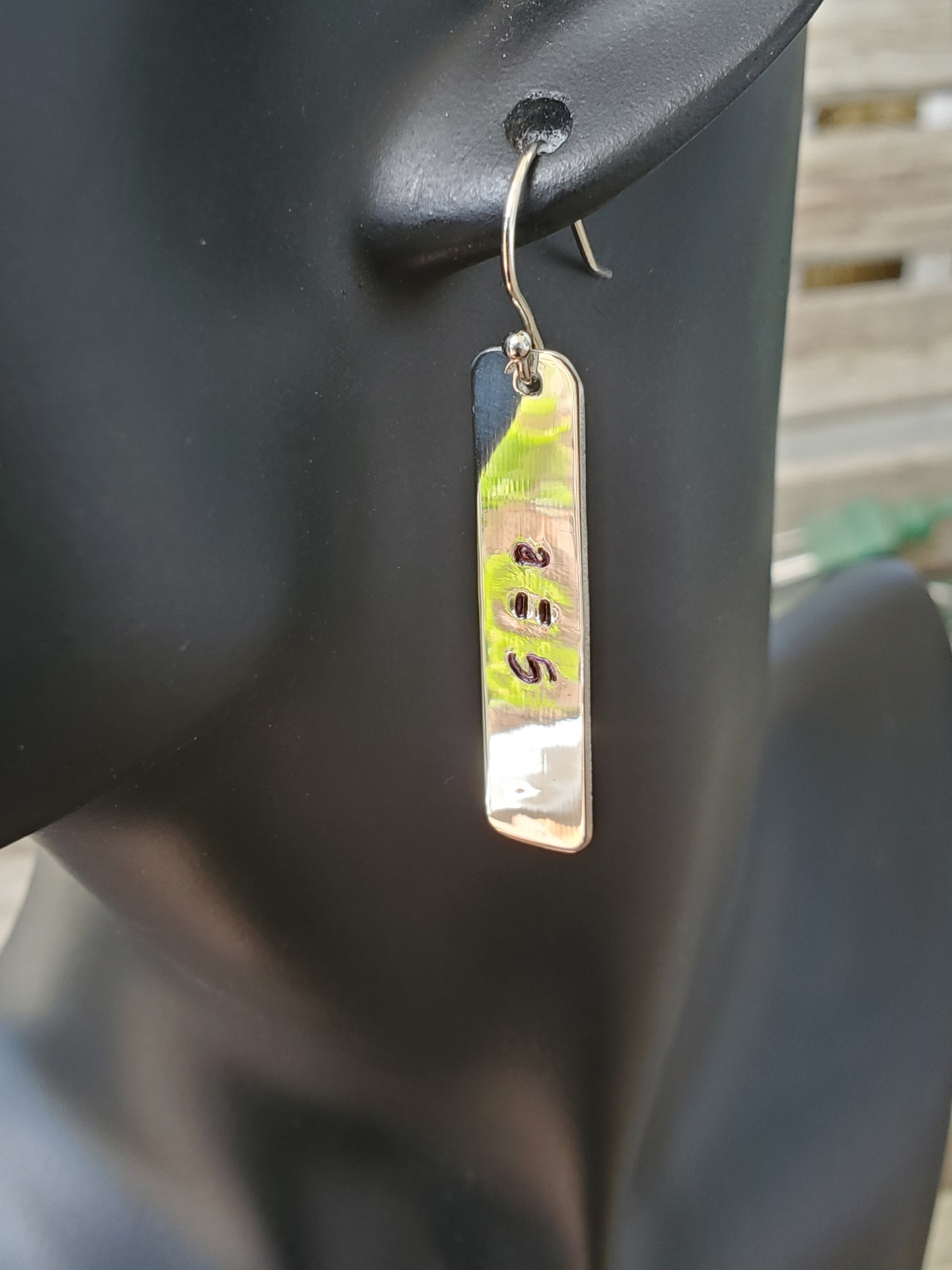 Our stamped earrings are made from solid sterling sheet metal and connected with sterling french wire earrings. They have been shaped and polished for texture, making them dance and shimmer in the light.
