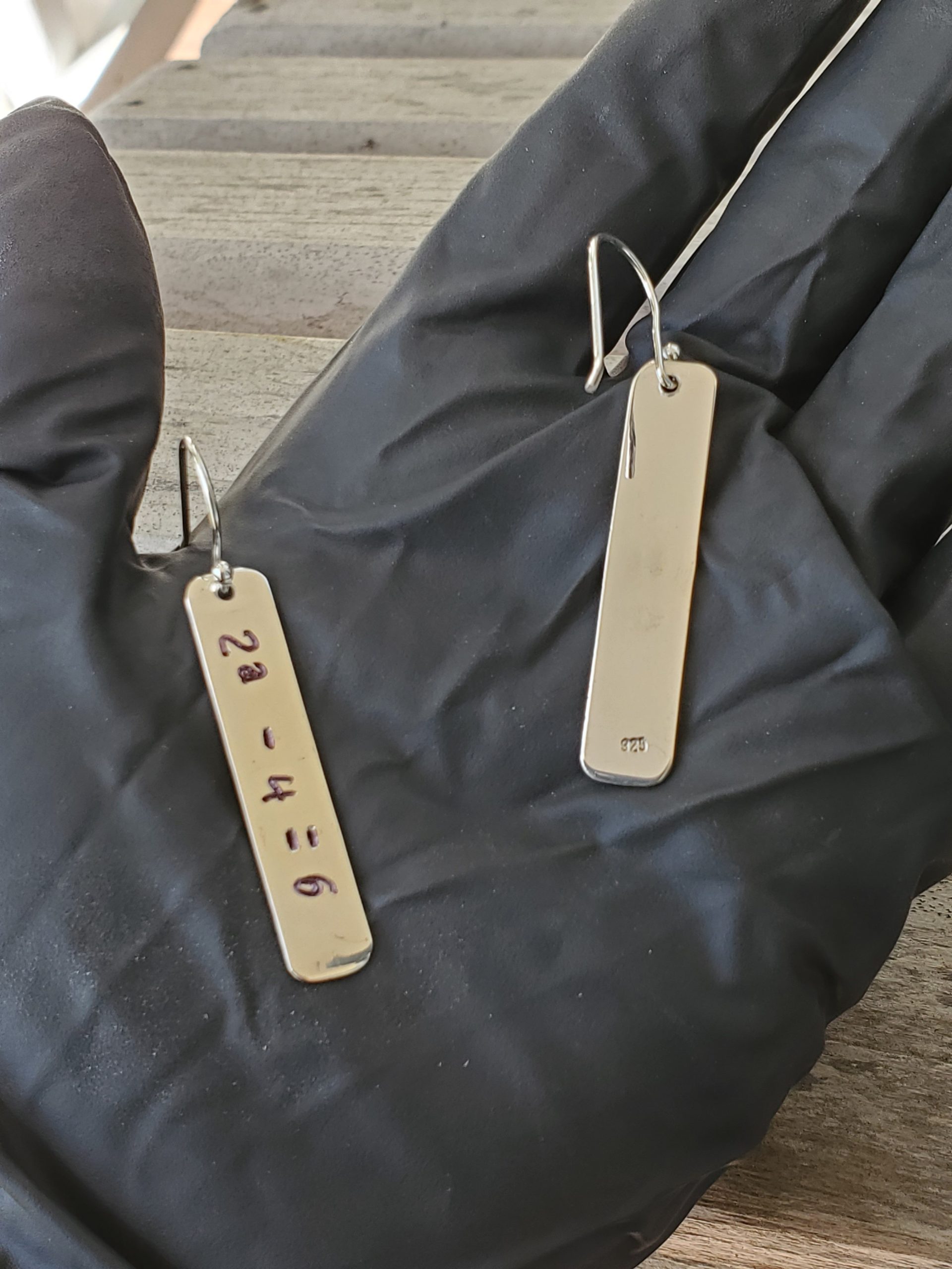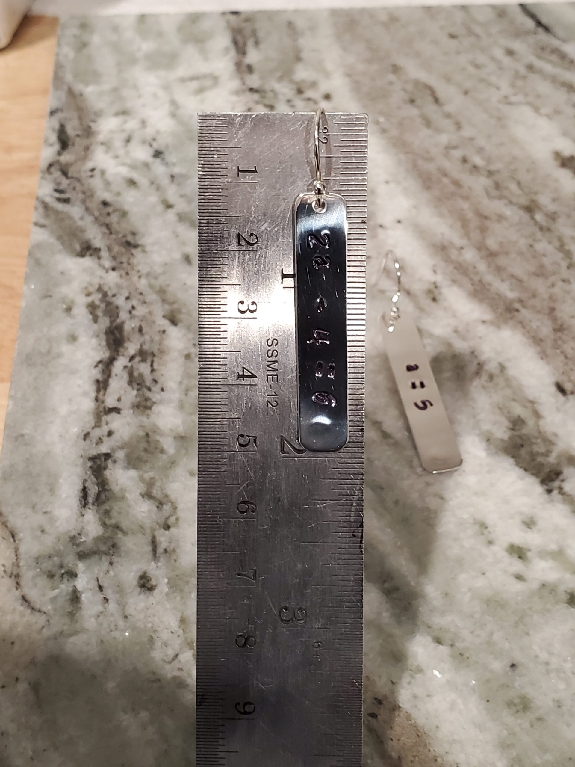 The rectangles are just pver 5/16″ wide and are about 1.5″ long. The earring length is roughly 2″.