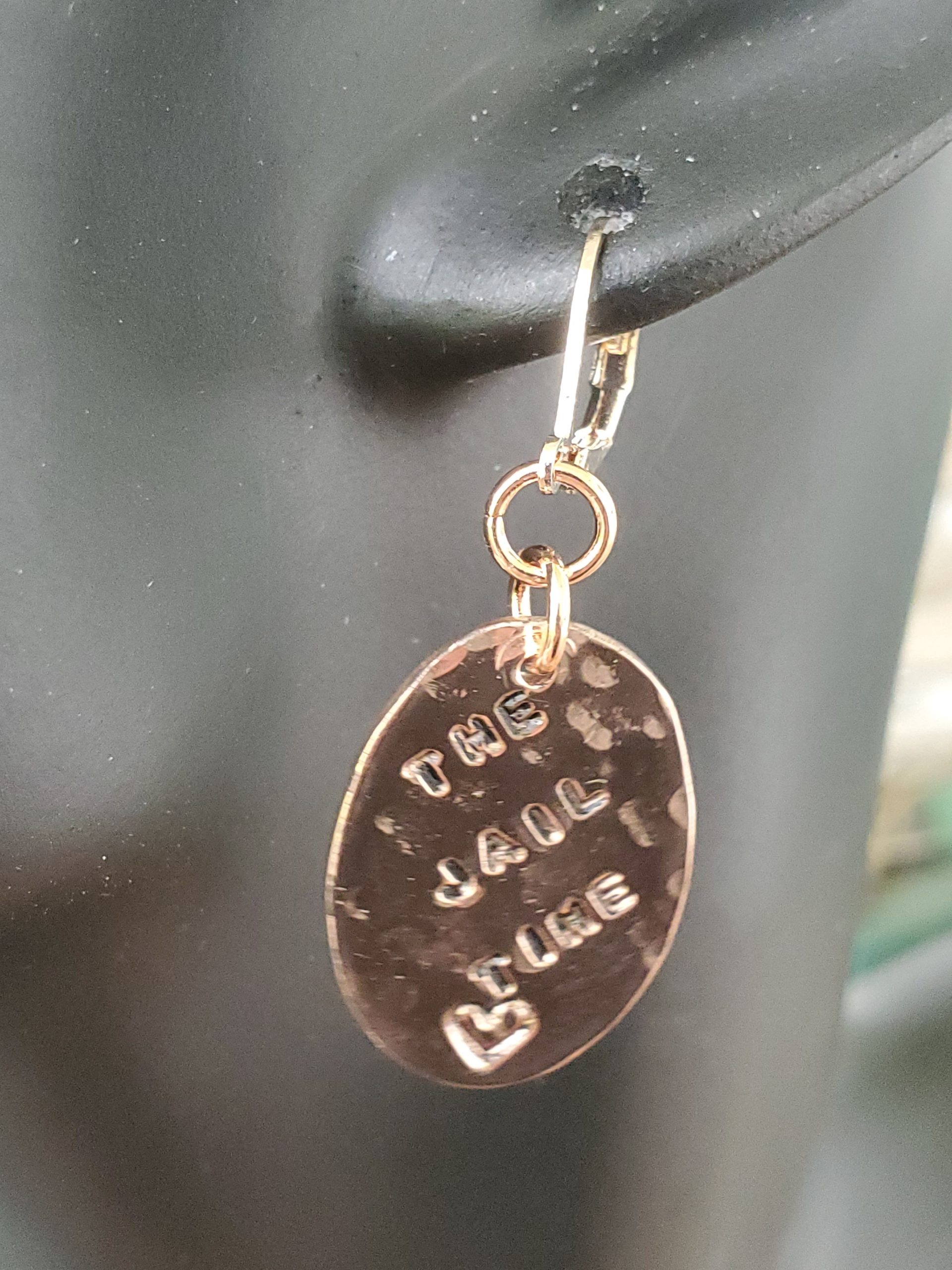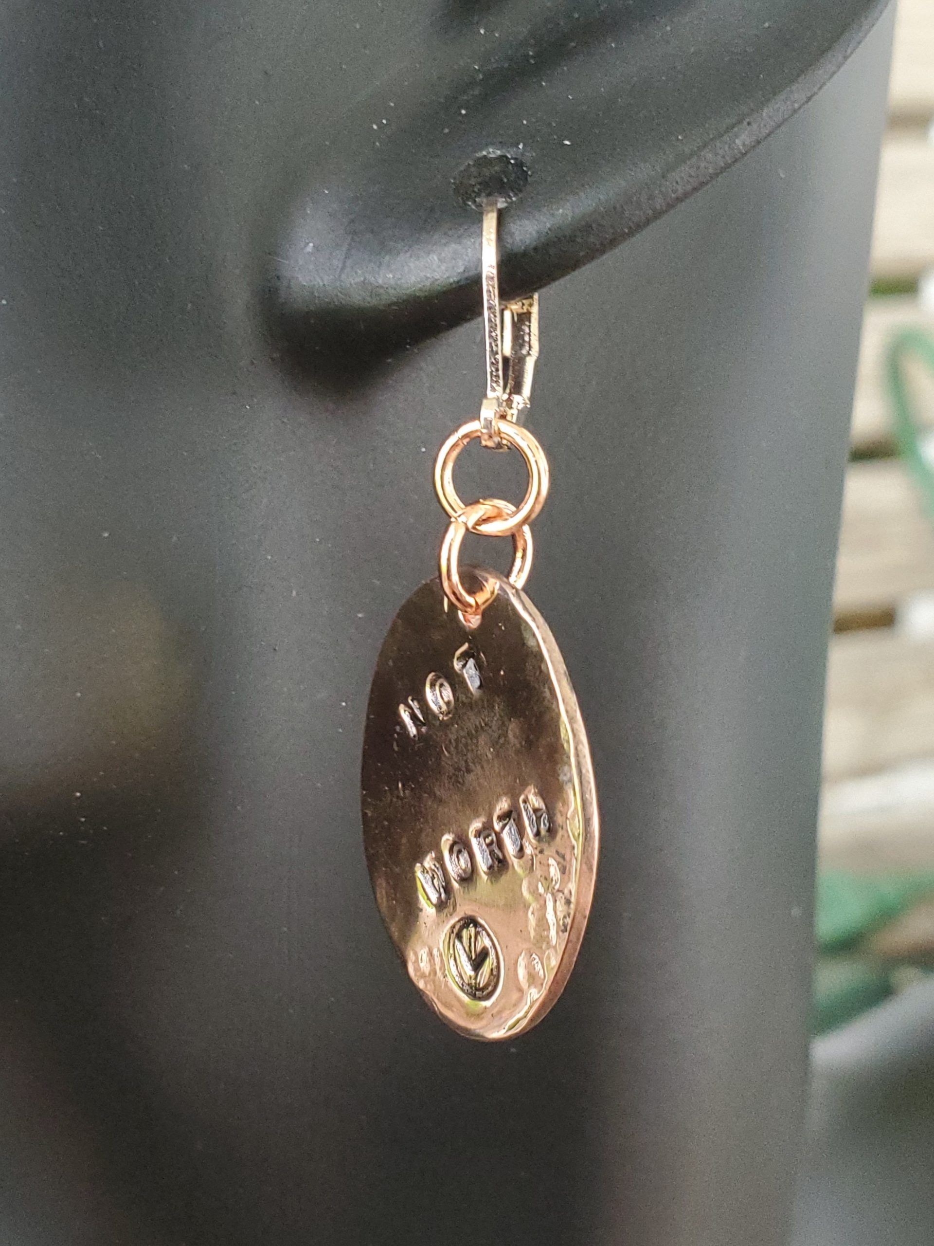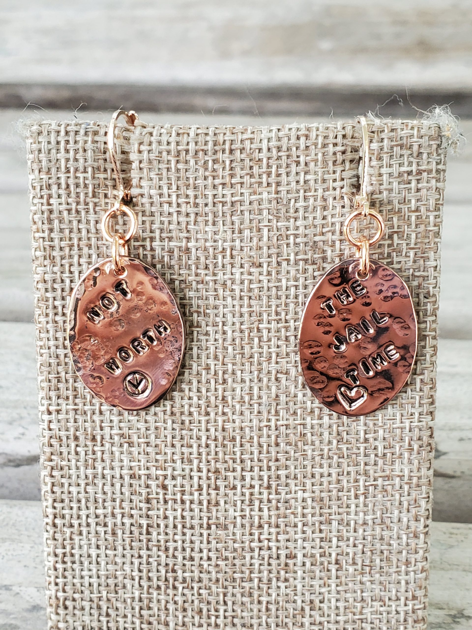 Not Worth The Jail Time on Hammered Copper Ovals with Lever Back Bronze Colored Earrings