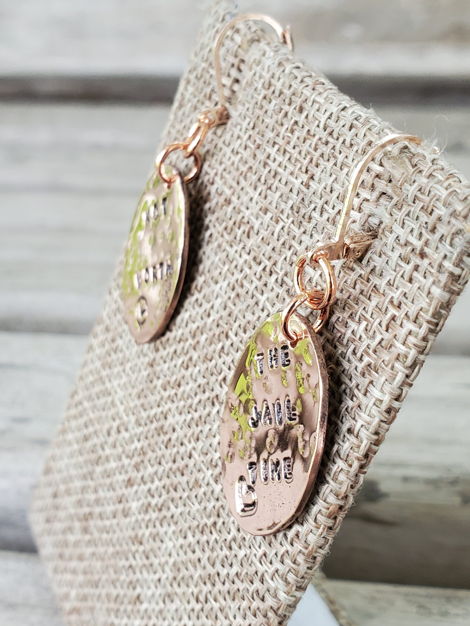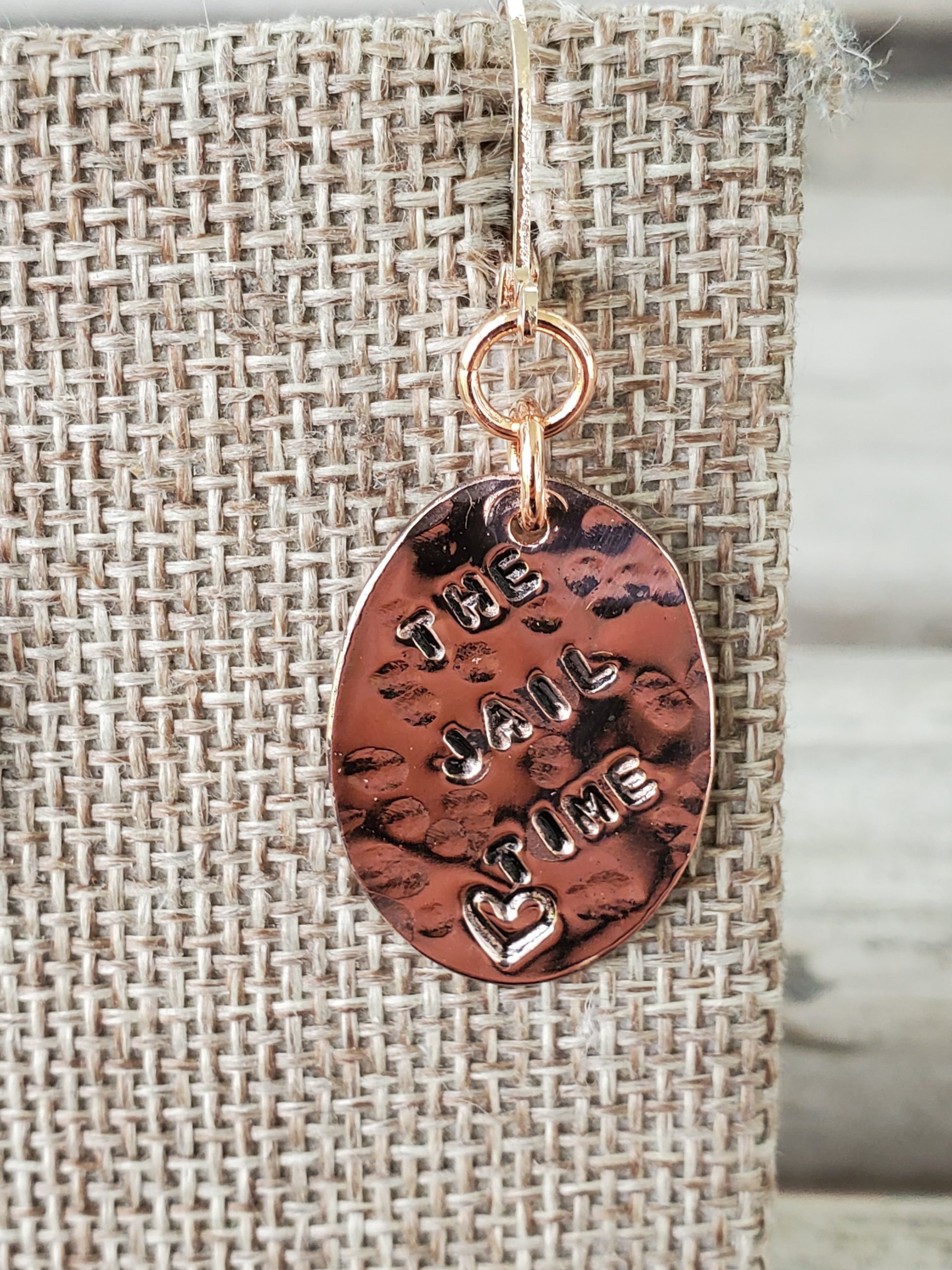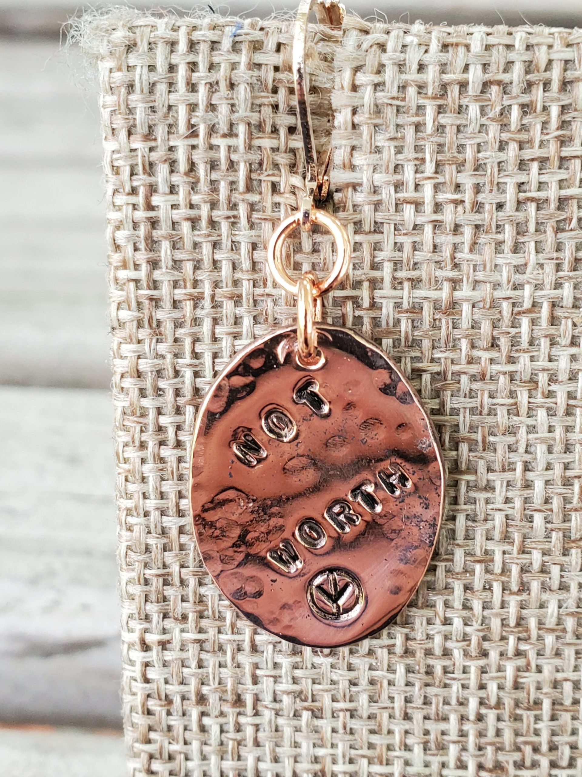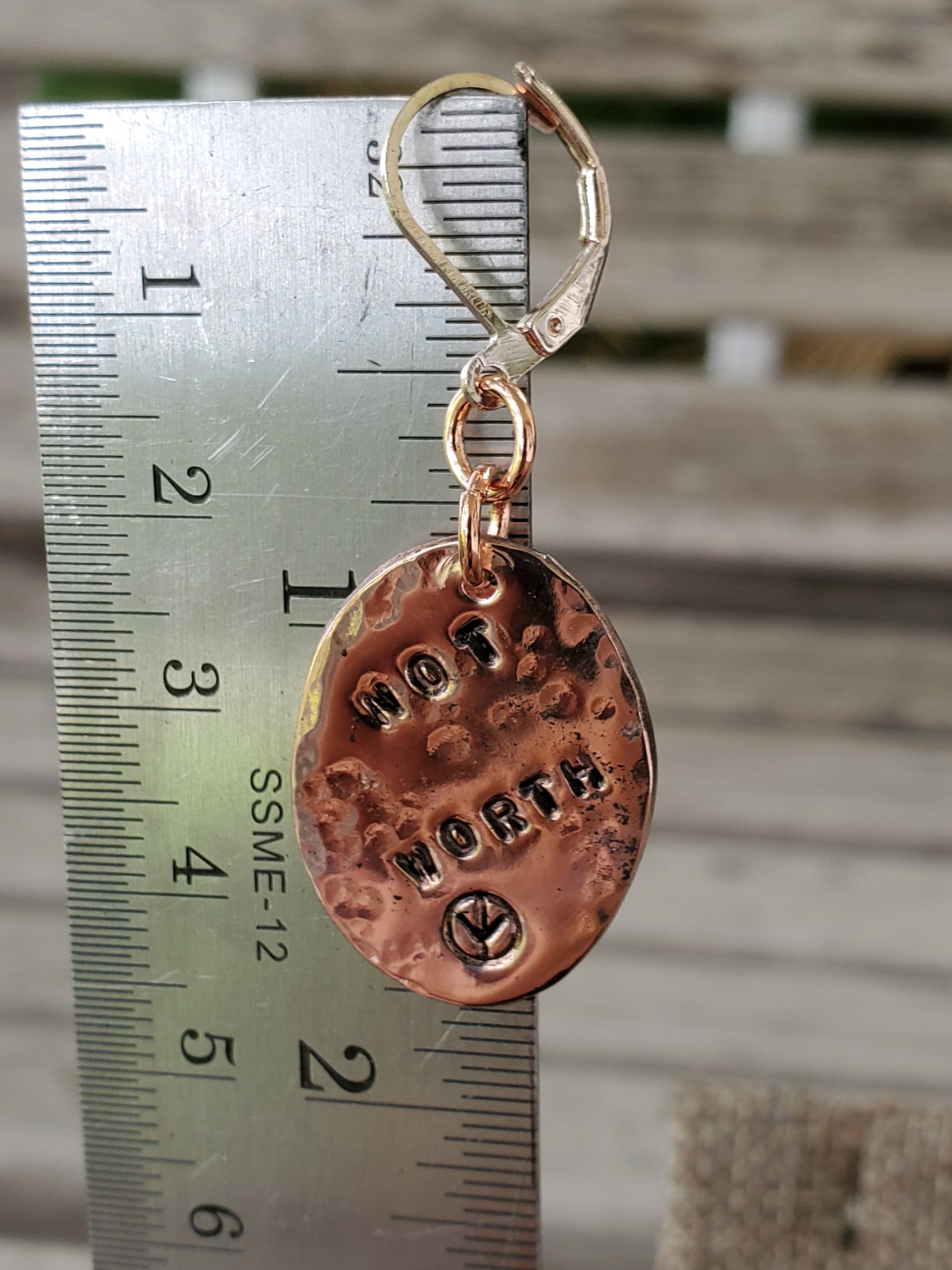 Not Worth The Jail Time on Hammered Copper Ovals with Lever Back Bronze Colored Earrings